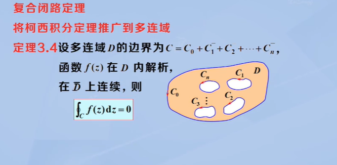 柯西积分定理在证明的过程中使用到了格林公式,而格林公式的运用本质上使用了单连通域这一条件,于是对于多联通域内的闭合曲线,其所围成的闭合曲线中的部分位置可能不在此区域中,于是为了解决这一问题我们需要使用闭路变形原理。它是柯西积分定理在多元域连通域的推广,于是我们首先给出此定理: