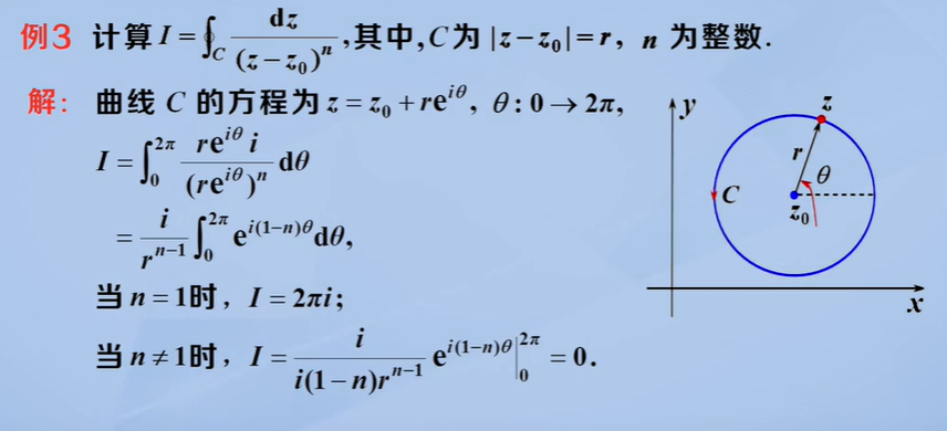 - 也同样具有环路积分,同时需要知道的是,环路积分在后面对复变函数性质分析中具有比较重要的意义。